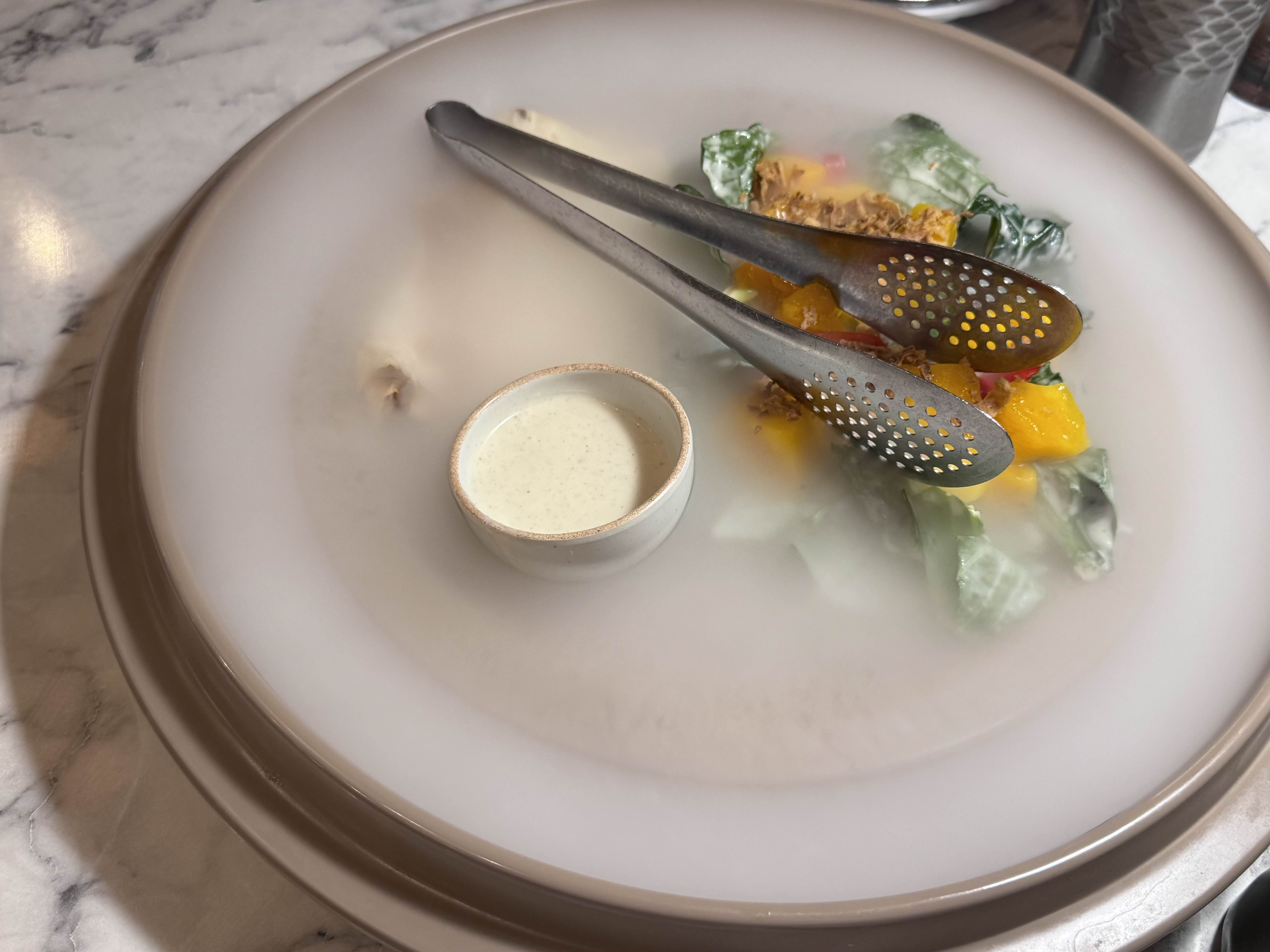 드라이아이스로 화려한 치장을 한 메뉴가 나왔다